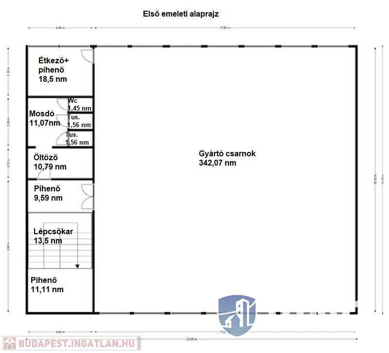 Nagykanizsa Ipari Parkjában eladó ez a közel 1000 nm nagyságú csarnok. A létesítményhez összesen 511 nm-s terület tartozik, melynek jelentős része betonozott, parkolónak kialakított. A könnyűszerkezetes csarnok 2012ben tovább bővült 10 cm vastag szendvicspanel segítségével, az alsó szintre 2 további emelet került kialakításra.