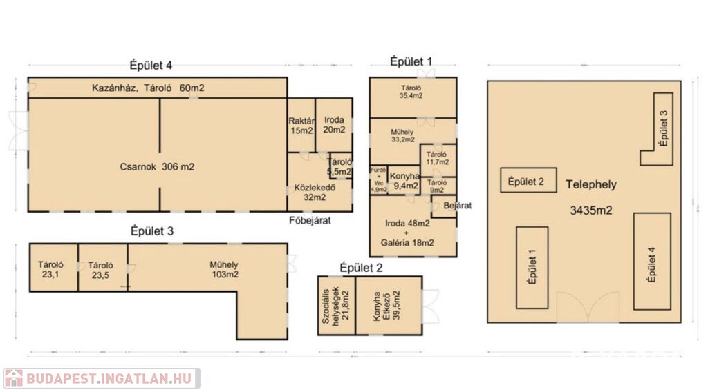 Az épületek mind tégla épületek, jó válaszfalas elrendezéssel, melynek köszönhetően igény szerint jól alakíthatók a belső terek.