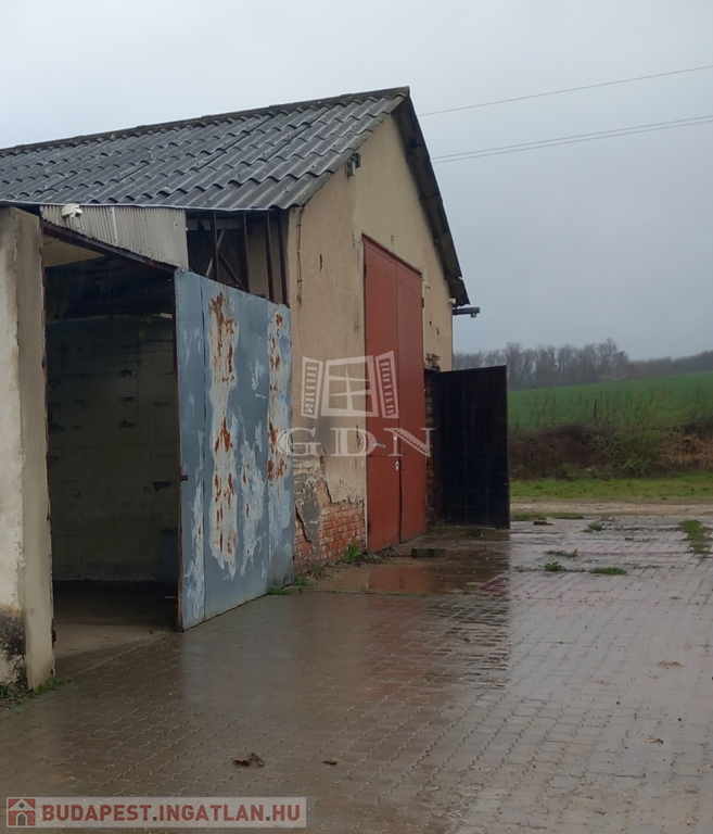 - 1 db régi építésű vasbeton tartóoszlopokon fém szerkezetű, hullámpala tetővel, téglával falazva, dupla vasajtókkal, melyeken nagy méretű munkagépek is könnyedén be tudnak állni ( 17,60 x 12,10 m)