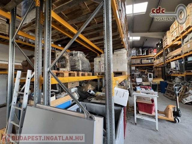 Egyéb: biztonsági kamerarendszer, IT hálózat, távfelügyeletre kötött riasztórendszer, nagyméretű homlokzati világító reklámtábla. Az ingatlan ideális cégközpontnak, logisztikai központnak, vagy műhely besorolásának köszönhetően akár ipari termelőtevékenységre is alkalmas. Jelenleg az épület raktárként működik, 350 raklap kapacitású állványrendszer lett kiépítve, ami a gerendapárok átrendezésével akár 500 raklaphelyig növelhető. Ezen minősített és engedélyeztetett polcrendszer is igény esetén külön megállapodás részét képezheti, valamint a két emelőtargonca, továbbá szükség esetén a kint elhelyezett 4 raktár- és egy irodakonténer is. Az ingatlan per- és tehermentes és rövid időn belül birtokba is vehető! Az ingatlan fordított áfával könnyedén kivitelezhető. Irányár: 145.000.000 Ft.