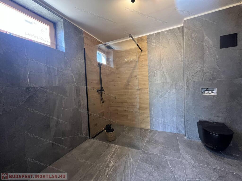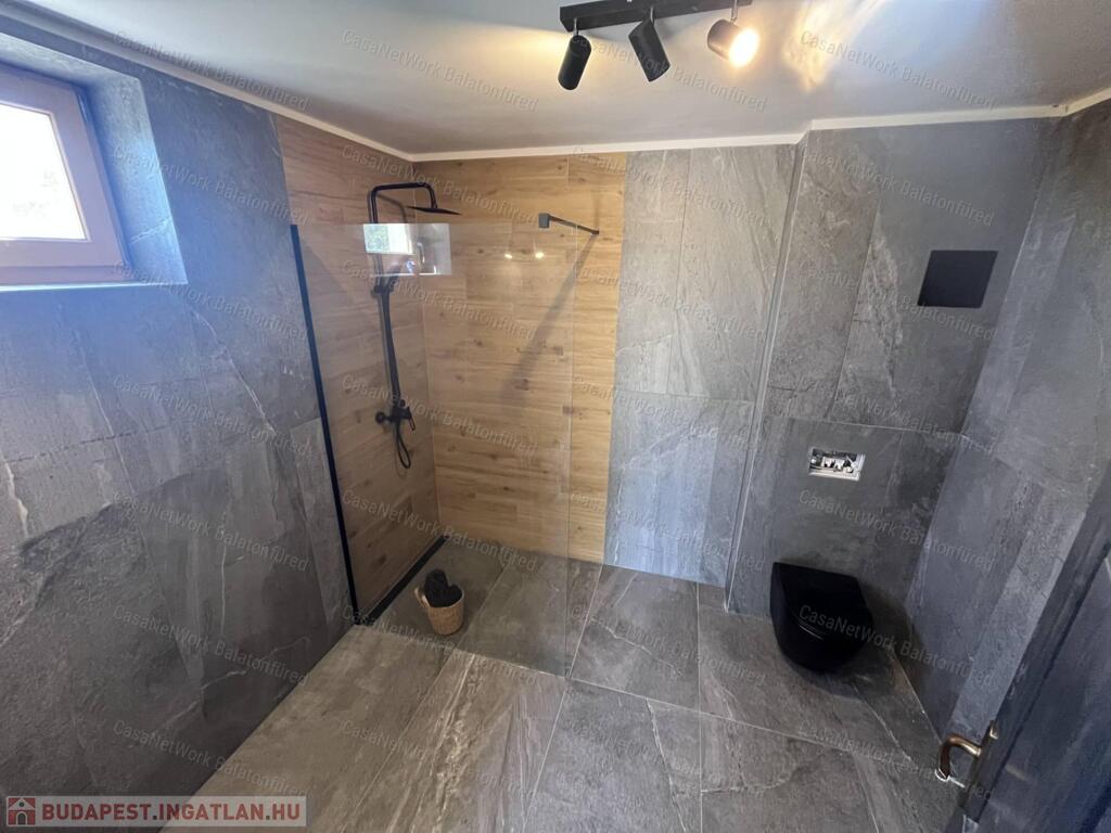 - A paloznaki balatoni panorámás épület, első szintje elkészült - 40 m2. Ezen a szinten kulcsrakész kiviteli állapotban elkészült egy fogadó, egy fürdőszoba és egy garázs amely jelenleg elektromos fűtéssel használható. A padlófűtés előkészítve. A további szintek a folyamatban lévő engedélyek és tervek alapján befejezhetőek bruttó 40 m2-en egy lakószint és további egy szinten beépíthető tetőtér kialakításával.