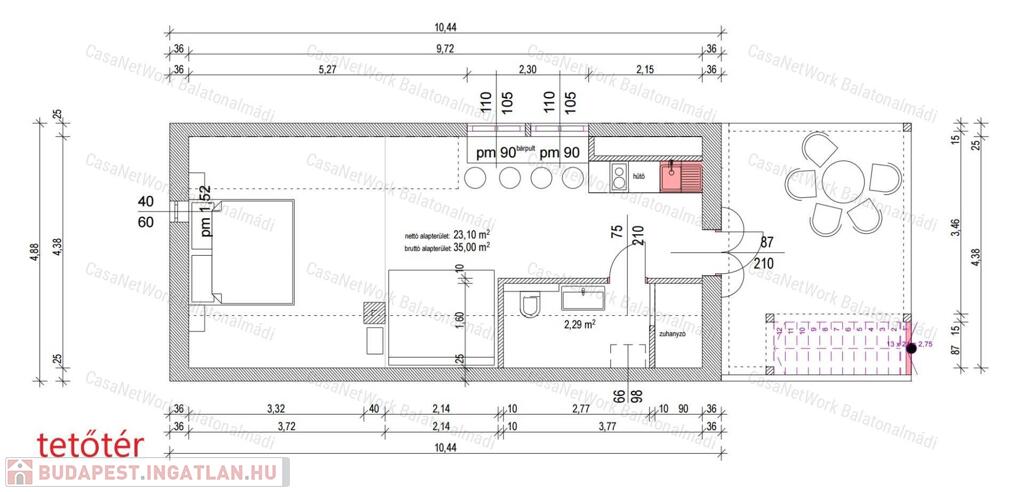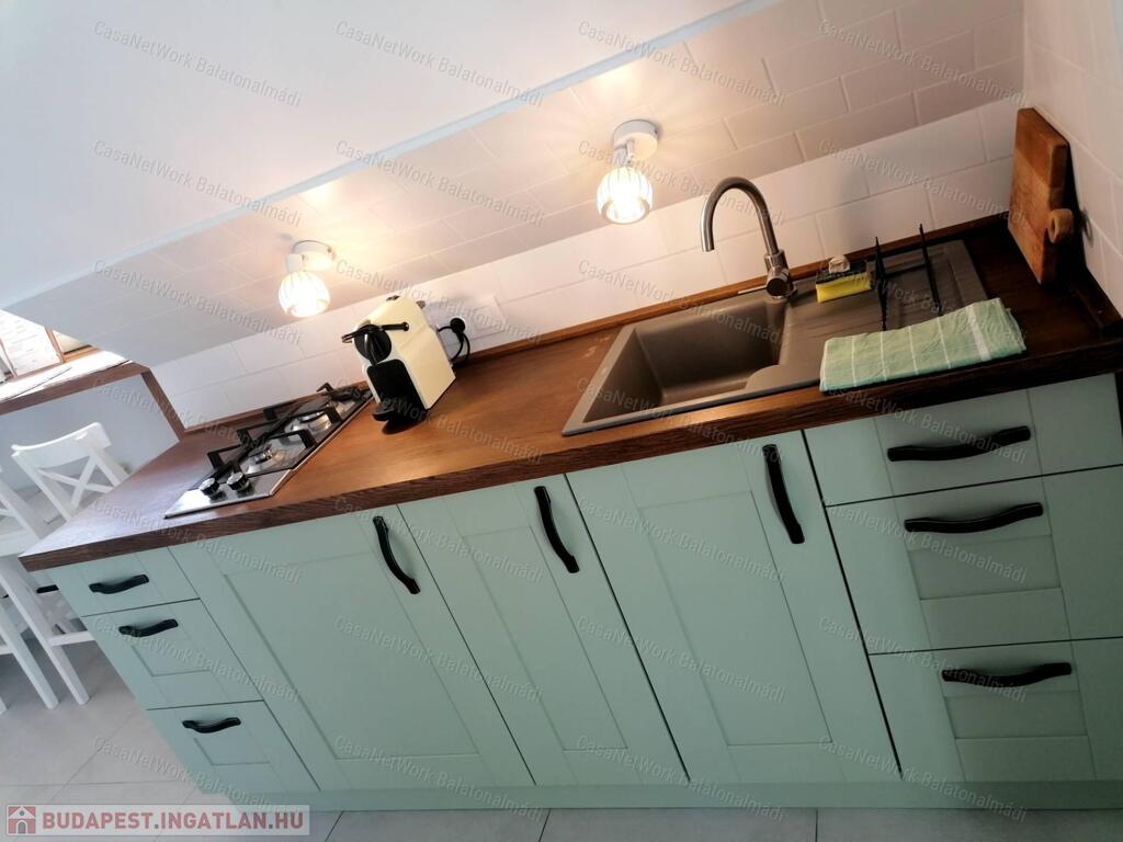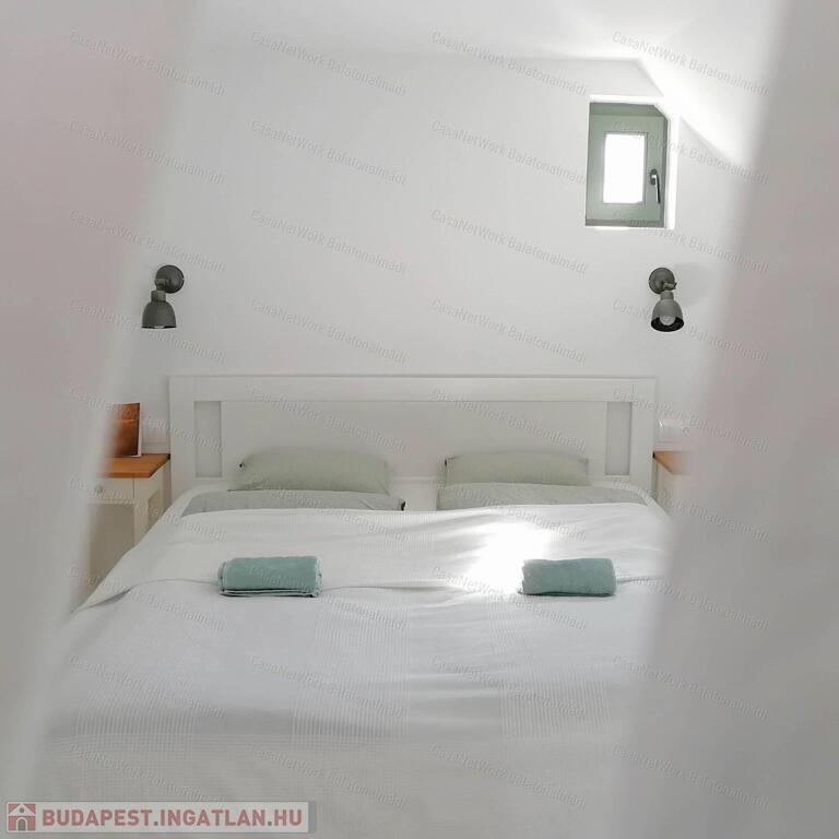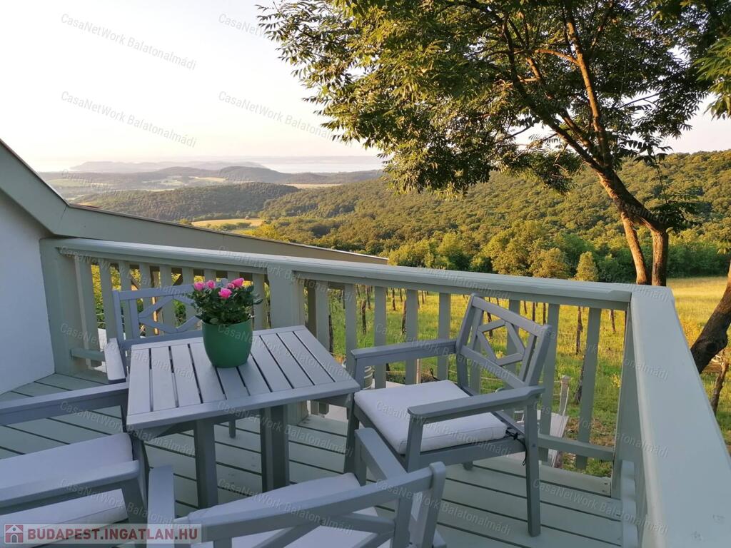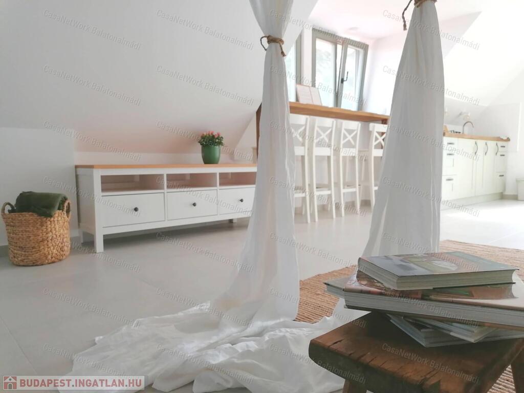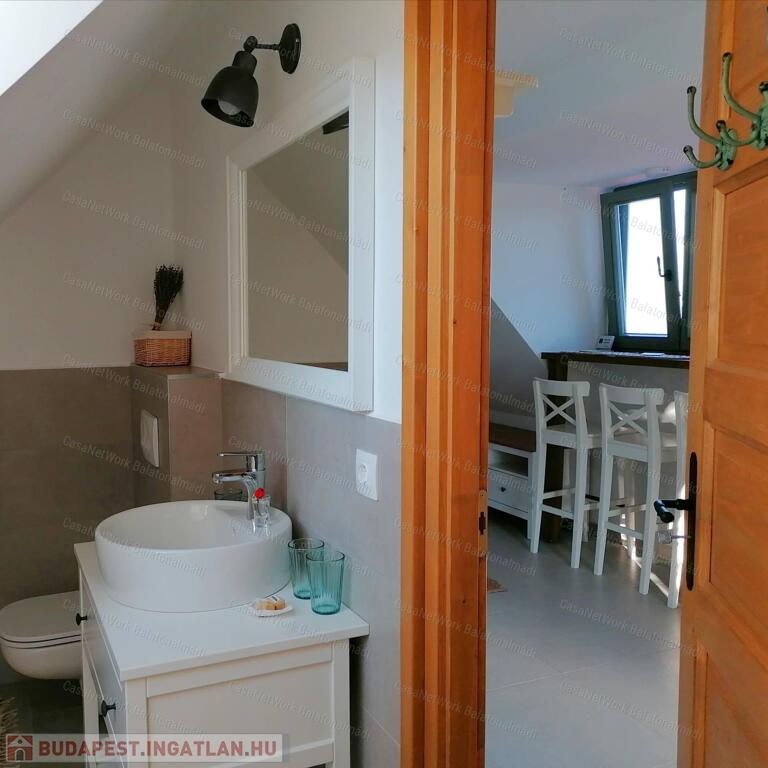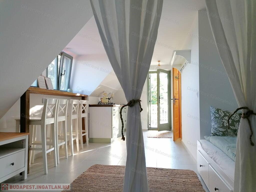 A tetőtérben került kialakításra egy külön bejáratú stúdió apartman jellegű vendégszállás, nagy háló-nappalival, teakonyhával, egy fürdőszobával és egy 10 m2-es terasszal, ahonnan szintén gyönyörű a kilátás a környező dombokra és a Balatonra.