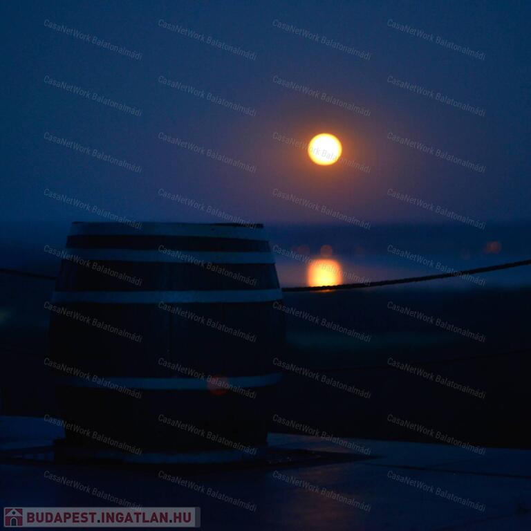 Az alsó szinten található a vendéglátó egység konyha-étkezővel, egy száraz pincével és egy wc-vel. Az 50 m2-es, tágas fedett teraszon, csodálatos balatoni és tájpanorámában gyönyörködve fogyaszthatnak a vendégek.