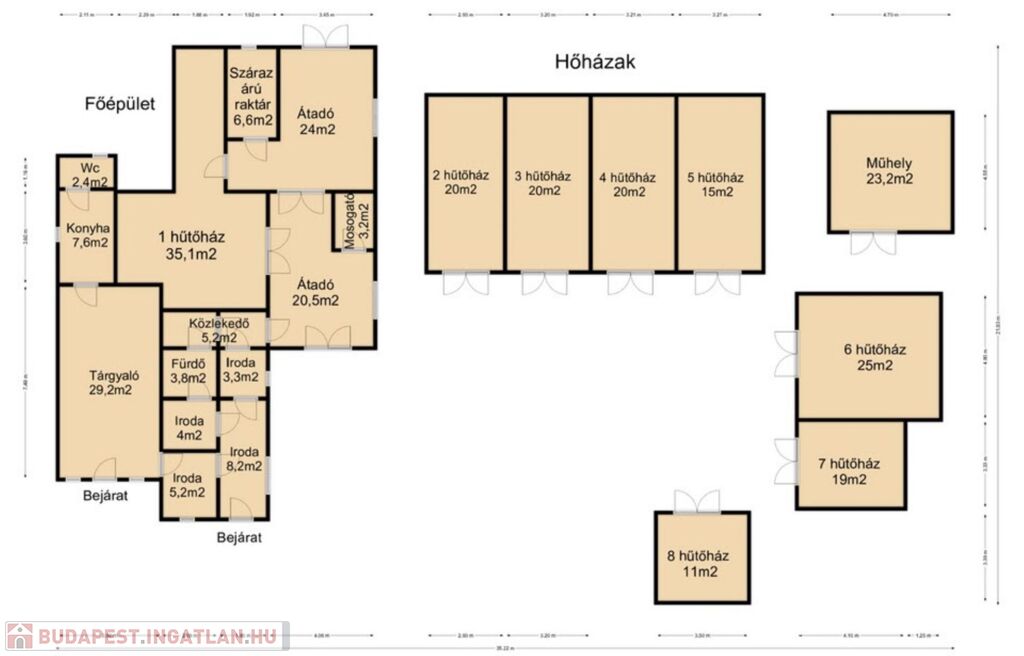 Az épületben lévő teljes felszerelés, polcok, hűtők valamint a teljes árúkészlet a vételár részét képezi.