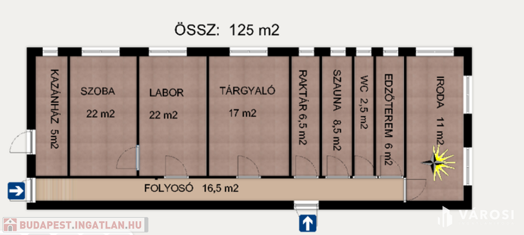 Helyiségek: szoba, labor, tárgyaló, iroda, wc, tusoló, edzőterem, szauna, konyha, étkező.