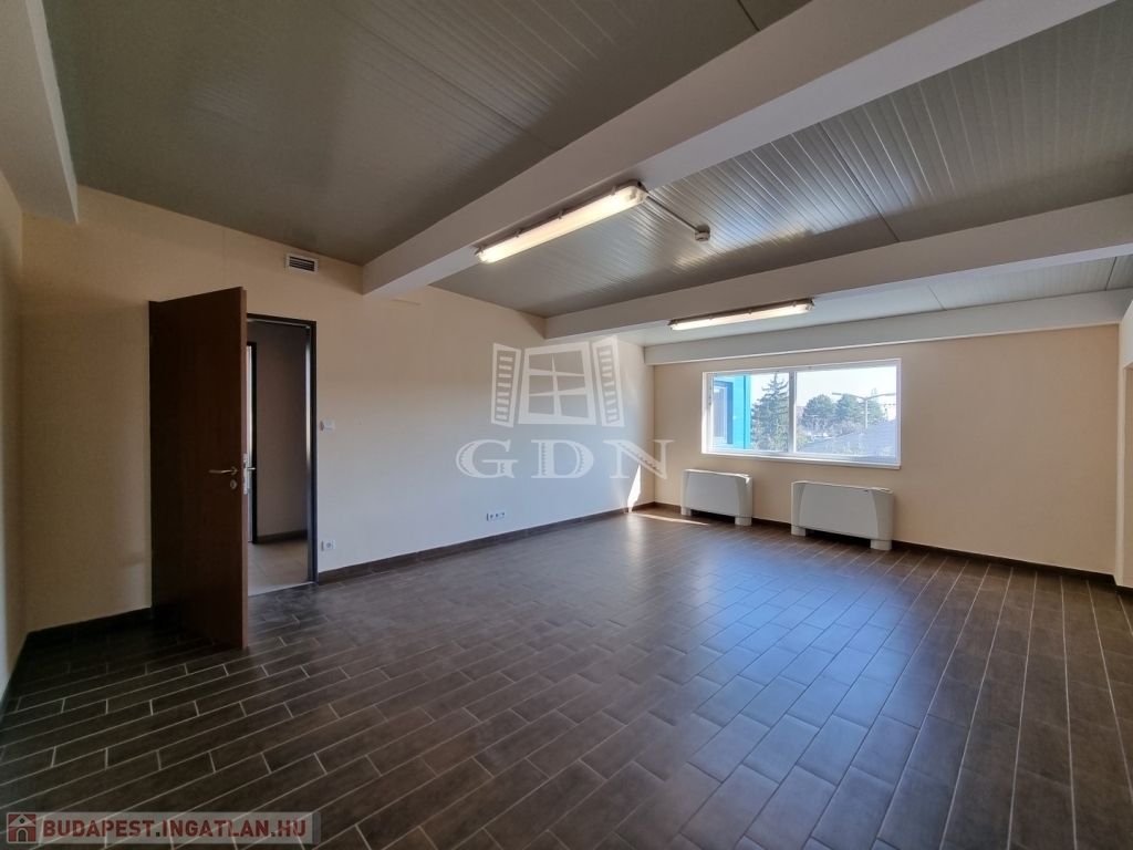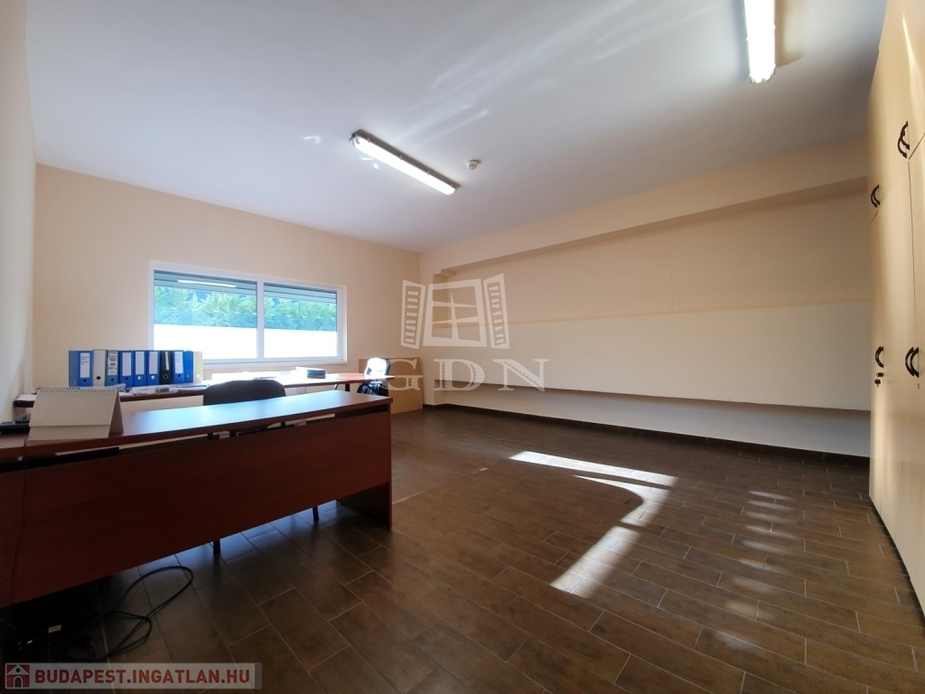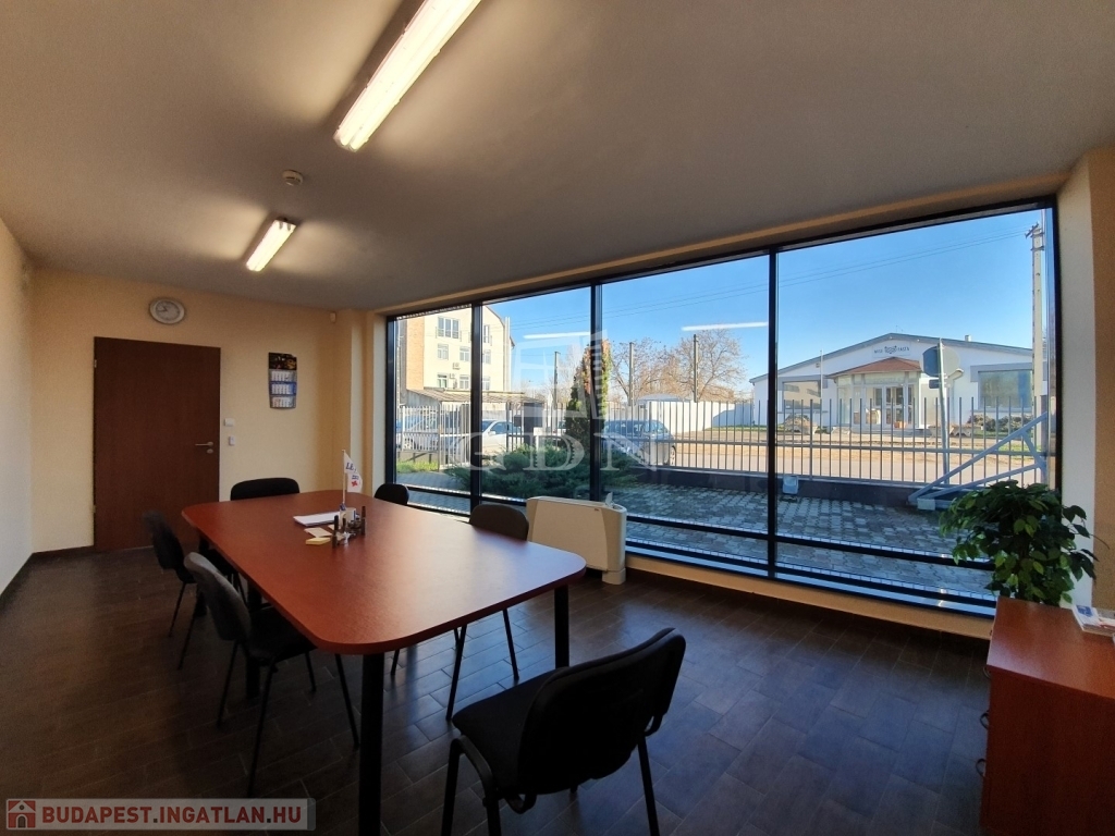 Az épület elosztását tekintve egy utcafronti háromszintes iroda-fejépületből és egy kétszintes, több szekcióból álló, de egybenyitható gyártó-üzemi és/vagy raktár területből áll.