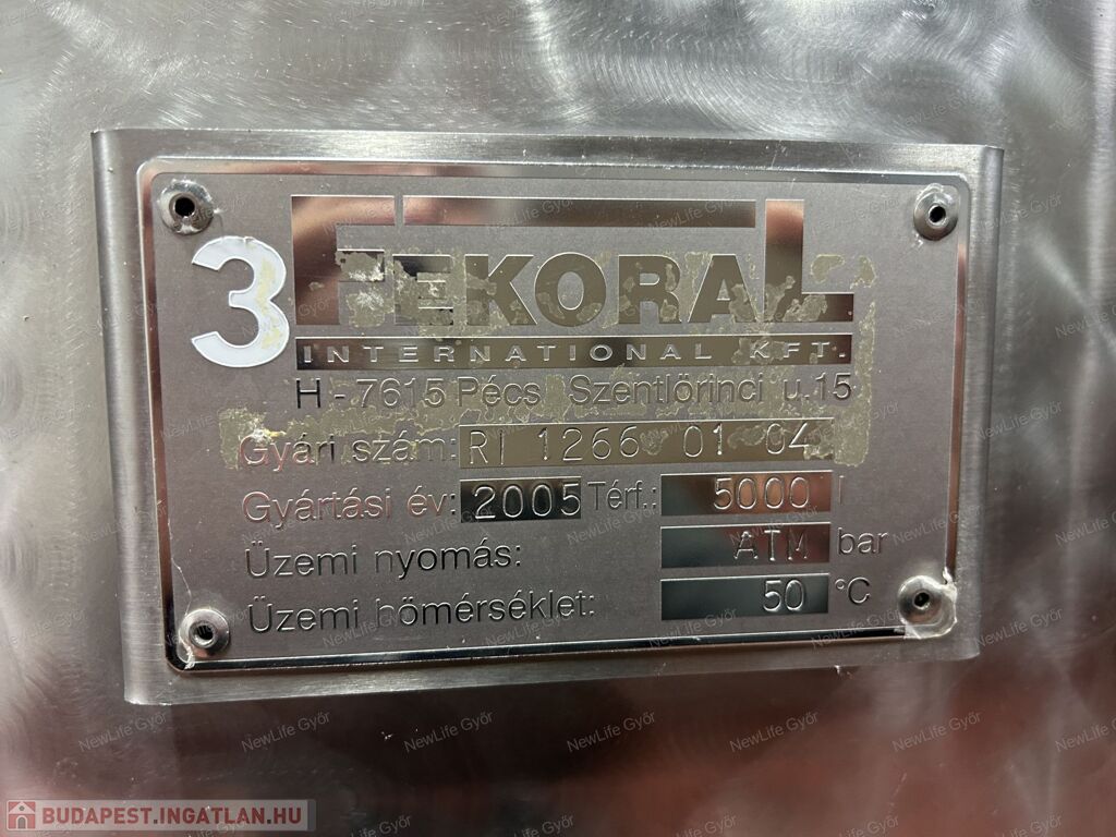 1 db 1000 literes acél puffer tartály a palackozáshoz
