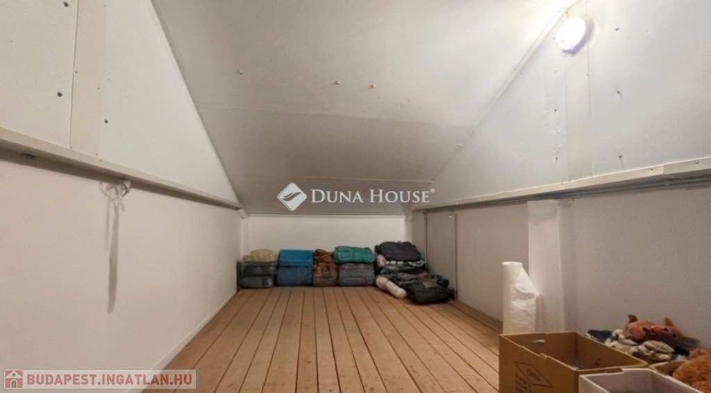 A tégla szerkezetű garázs padlástere beépítésre került, így az alapterületet a tulajdonos majdem a duplájára tudta növelni.
