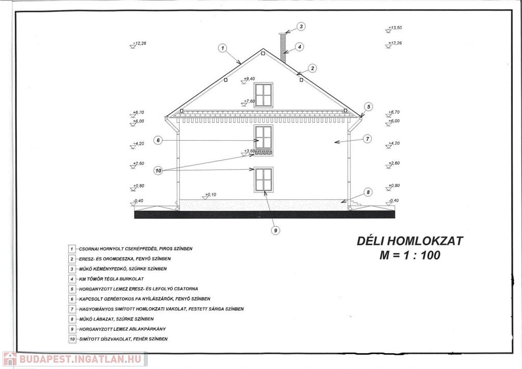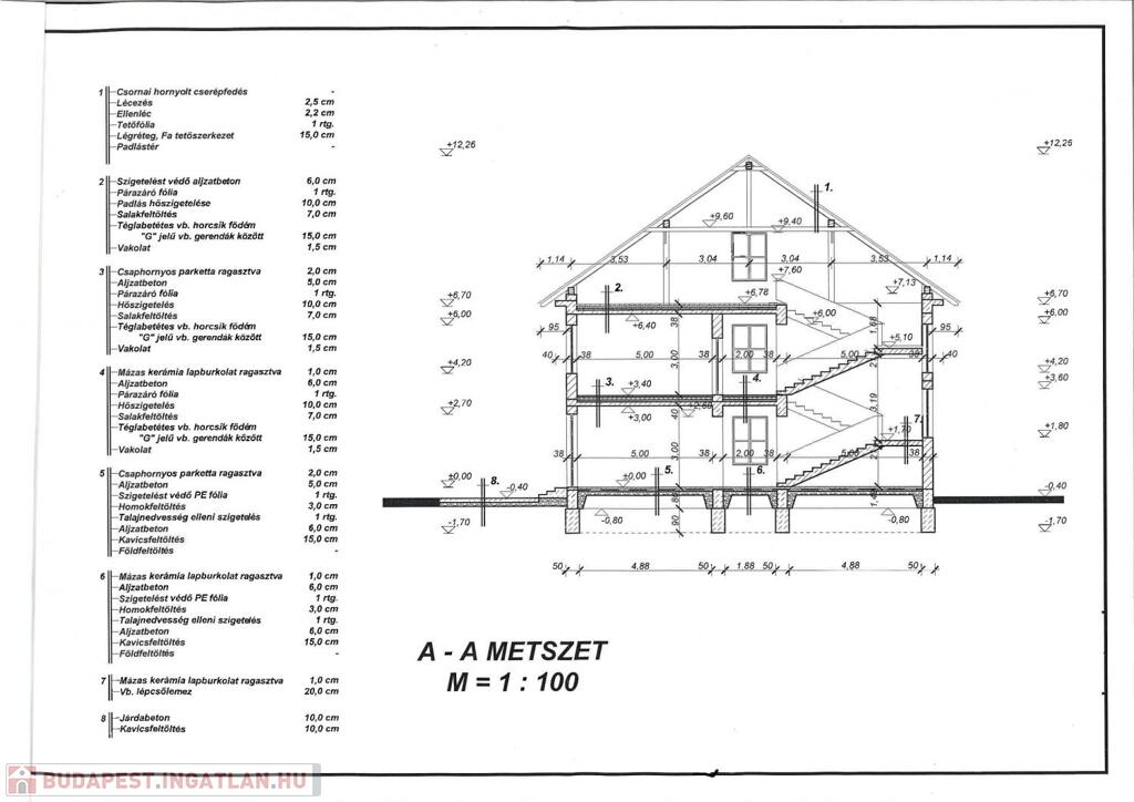 Födémszerkezet. 15 cm vtg. téglabetétes vb. horcsikfödém, 22 cm magas „G” jelű vb. gerendák között, salakfeltöltéssel.