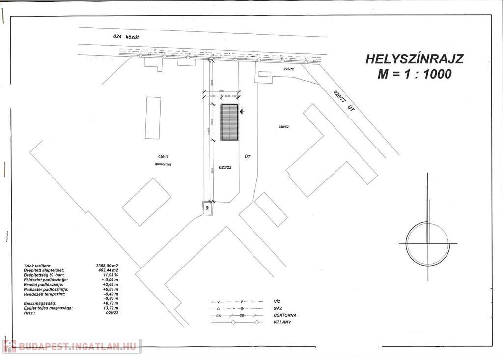 Beépített alapterület 403,44m2 (11%-os beépítettség)