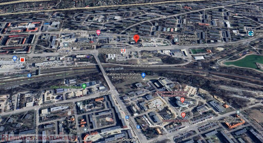 Az ingatlan elhelyezkedése igazán kivételes, Tatabánya városközpontjában található a Vértes Agórája (Tatabányai kulturális központ) közvetlen szomszédságában. Mivel az ingatlan Tatabánya 4 sávos fő útja (Köztársaság útja) mentén, valamint vasút és buszpályaudvar, M1-es autópálya közelében található, ezért megközelítése kiváló, közvetlen környezetében nagyszámú gépjárműparkoló rendelkezésre áll.