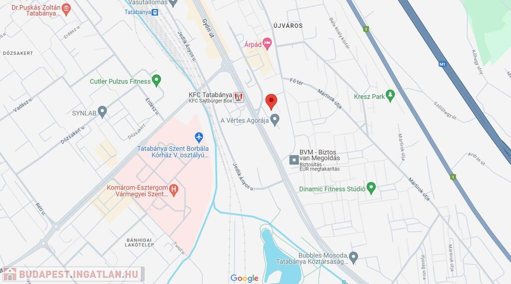 Az ingatlan elhelyezkedése igazán kivételes, Tatabánya városközpontjában található a Vértes Agórája (Tatabányai kulturális központ) közvetlen szomszédságában. Mivel az ingatlan Tatabánya 4 sávos fő útja (Köztársaság útja) mentén, valamint vasút és buszpályaudvar, M1-es autópálya közelében található, ezért megközelítése kiváló, közvetlen környezetében nagyszámú gépjárműparkoló rendelkezésre áll.