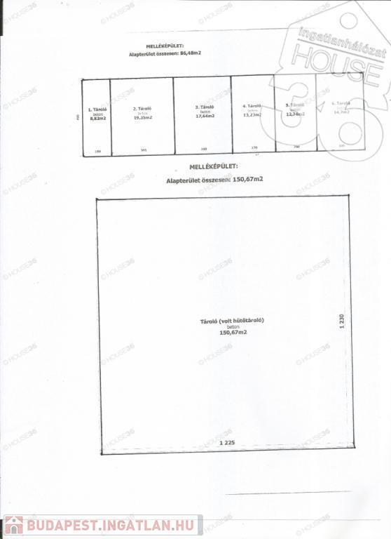 A telken található még egy 150 m2 alapterületű hűtőház.