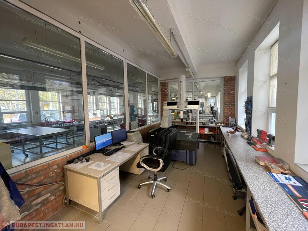 700 nm-es gyártócsarnok, kb. 200 nm-nyi iroda terasszal, minőségellenőrző szoba, ügyfélfogadó tér.