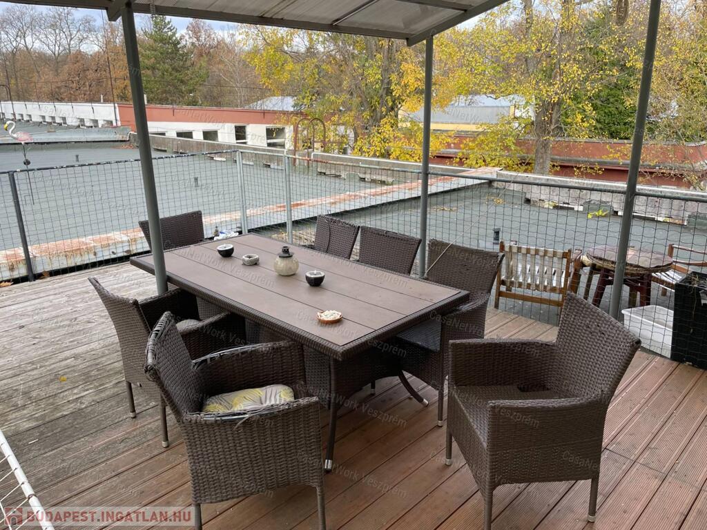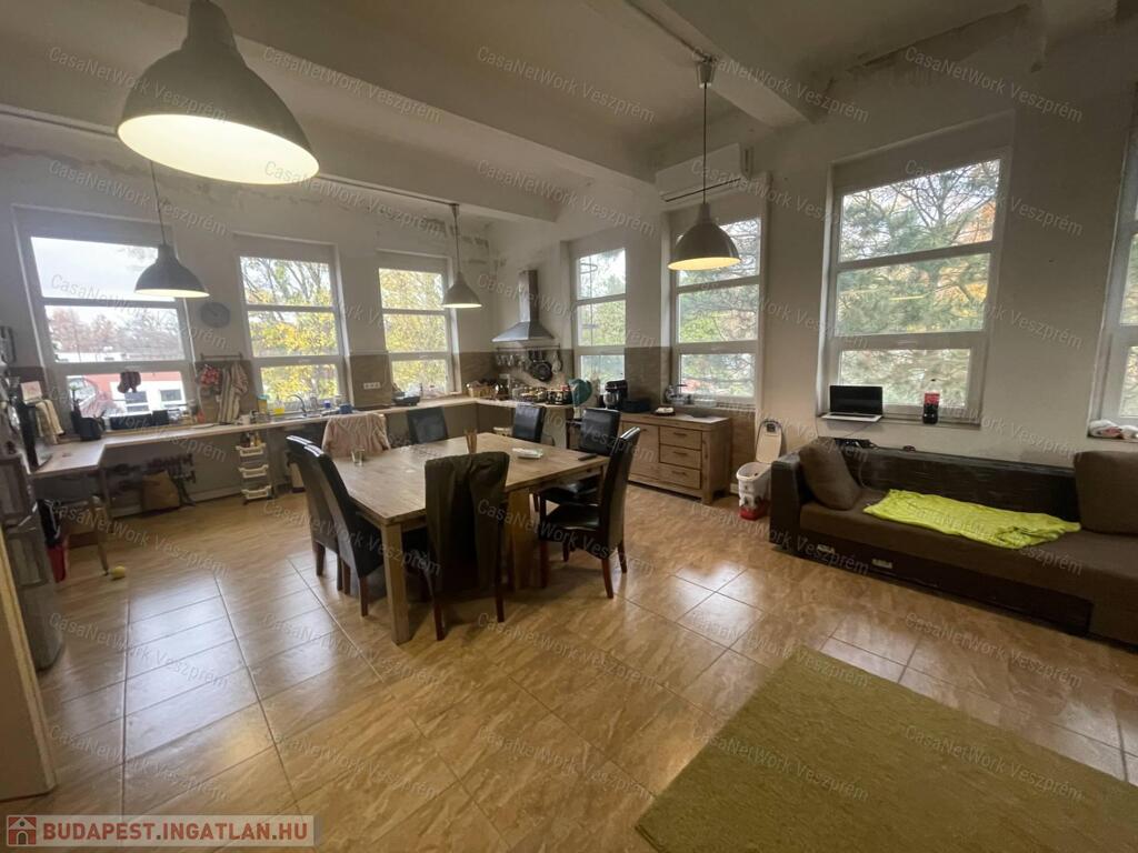 Szintén az emeleten 200 nm-es, jelenleg lakásnak kialakított (nagy kb. 40 nm-es tetőterasszal) helyiségek találhatók.