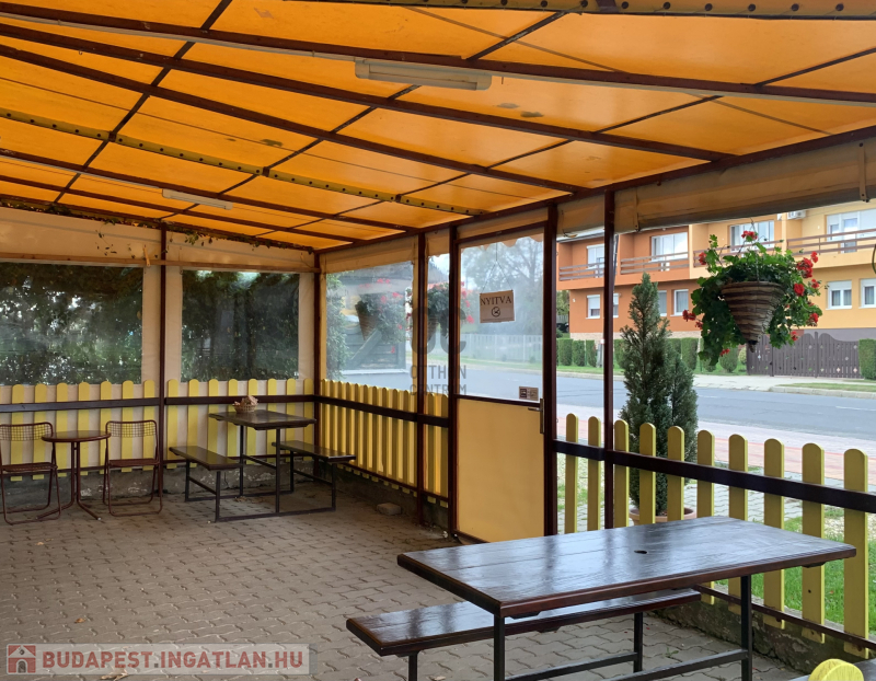 Az épület kialakítása nagyon jó, vendégek részére fedett terasz van kialakítva, az üzletbe belépve a kiszolgáló helyiségbe lépünk, innét jutunk el az előkészítőbe, hátsó részben a dolgozóknak kialakított öltöző, vizes blokk és tároló található, a vendégek pedig az udvarról tudják a vizes blokkot megközelíteni.