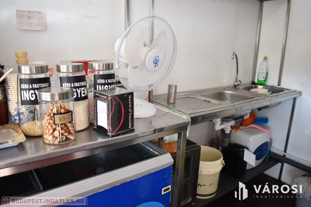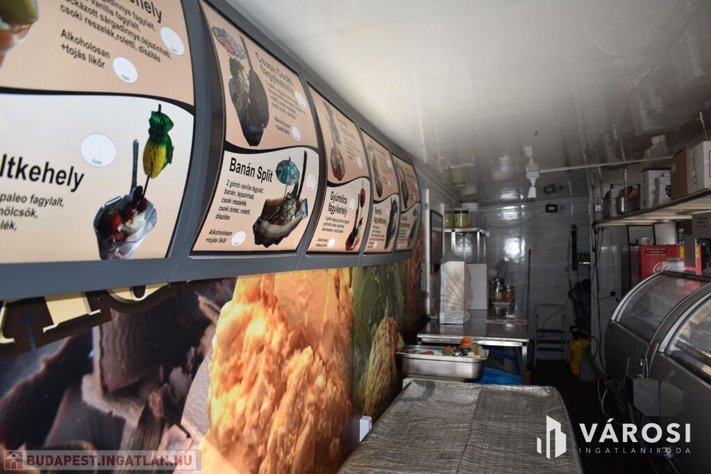 A vételár tartalmazza a fagylaltozóban lévő összes gépet, hűtőt, kerti garnitúrát és felszerelést.