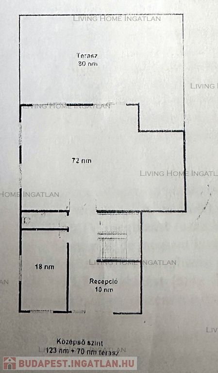 Földszint: A 120 nm-es földszinten található egy teraszkapcsolatos nappali/tárgyaló, fogadópult az előtérben, mellékhelyiség, gépészeti helyiség, kisebb iroda/szoba.
