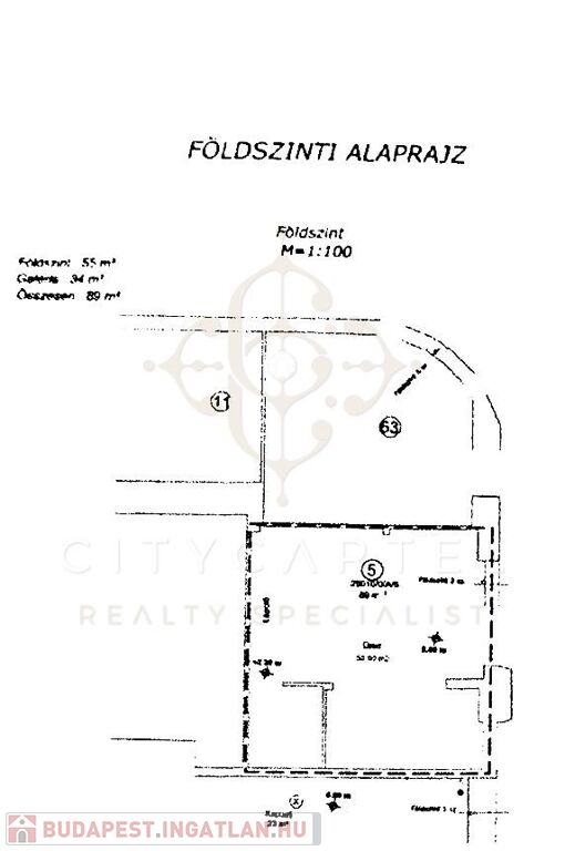 A földszinti rész 55 nm, amelyben ki lett alakítva egy kis mosdó és raktár is.
