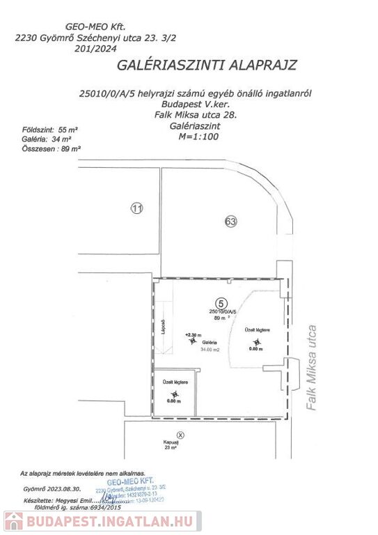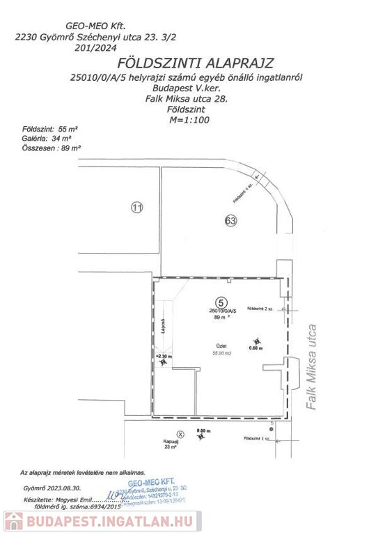 * Földszint 55 m2: ; belmagasság: 5.50 m