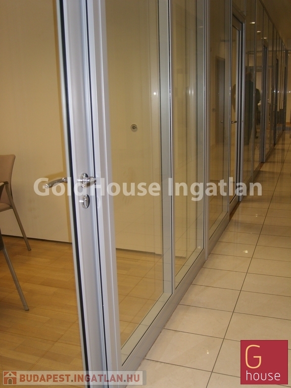 -az utcaszintes 200 nm-t mobilüvegfalas irodák alkotják, recepció és tárgyaló is van.