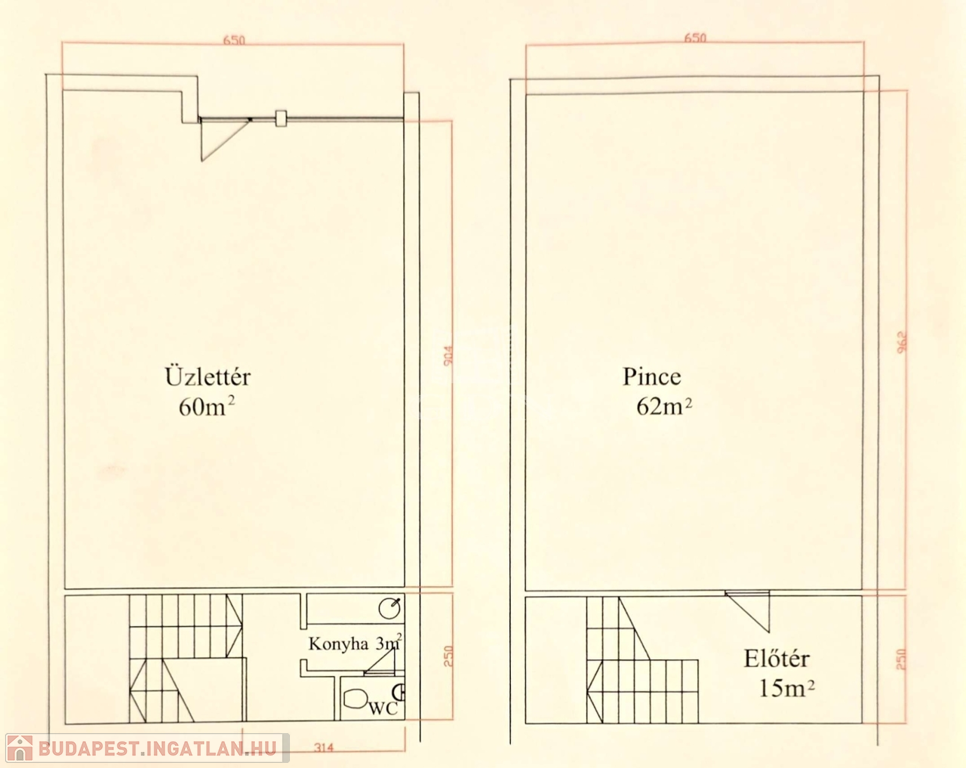 Földszint (60 m²): Utcafronti üzlettér, teakonyha, mosdó