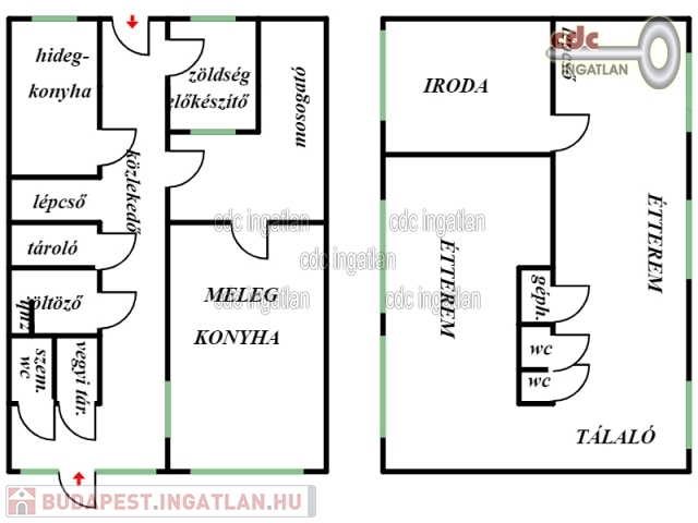 EGYEDI LEHETŐSÉG! TERMELŐKONYHA ÉS ÉTTEREM TULAJDONJOGA ELADÓ! VII. kerületben kínáljuk megvételre ezt a földszinti, utcai nézetű, üvegportálos, 214 m2-es, két szintes, 2 bejáratos, cirkófűtéses, világos, 2017-ben teljes körűen felújított üzlethelyiséget. Az ingatlan 2 szintes, szintenként 107 m2-es, vasbeton szerkezetű monolit vendégfödémmel lett létrehozva. A földszint 1000 adagos termelőkonyha és kiszolgáló helyiségei. Az emelet klimatizált, kb. 40 fős étterem, iroda, gépház. Ipari áram 3x50A, ipari gáz 16 m3-es gázóra és külön vízóra, HikVison kamerarendszer, riasztórendszer. A szagelszívást 6 m2 elszívóernyő biztosítja, a tető fölé kivezetett elszívó rendszerrel, légtechnikai rendszerrel az emeleti gépházban. Fűthető is a levegő. A légtechnika az ár részét képezi. Az étteremben lévő ingóságok, eszközök és berendezések, konyhai felszerelés igény esetén külön megállapodással megvásárolhatók. Az ingatlan értékesítése fordított ÁFÁ-val könnyedén kivitelezhető. Irányár: 189.900.000 Ft.