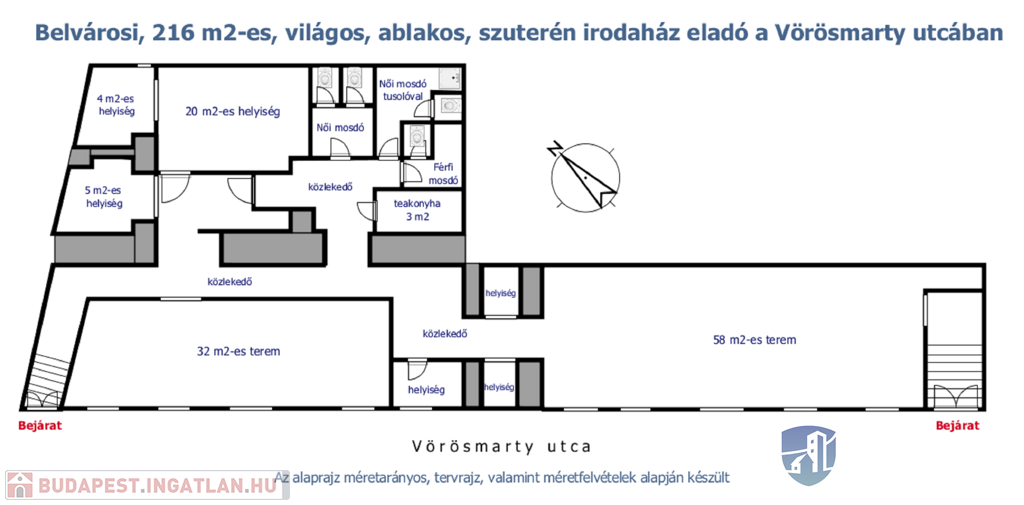 IN THE 7TH DISTRICT OF BUDAPEST, 400 M FROM ERZSÉBET KÖRÚT, ON VÖRÖSMARTY STREET, A RENOVATED BASEMENT PROPERTY SUITABLE FOR OFFICE SPACE WITH MANY WINDOWS, BRIGHT ROOMS AND EQUIPPED WITH TWO STREET ENTRANCES IS OFFERED FOR SALE