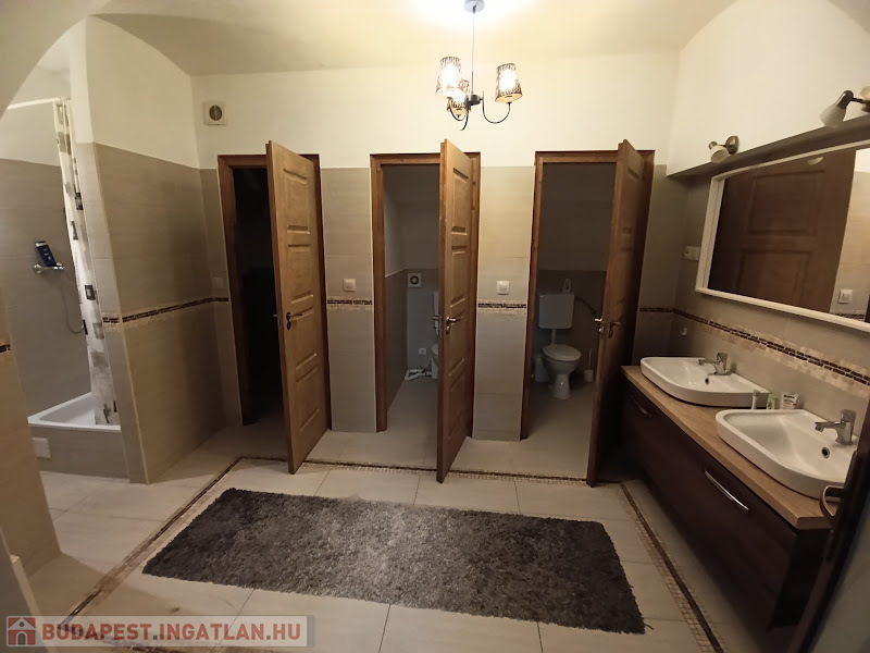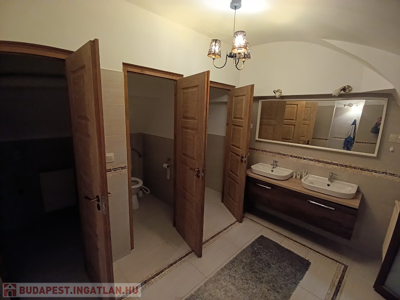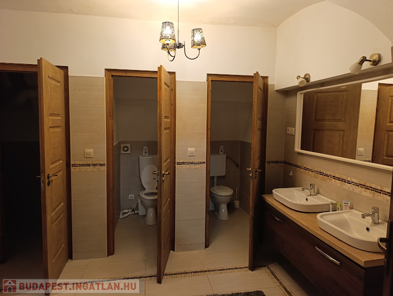 Mosdóhelyiség két külön bejáratú WC-vel és két zuhanyzóval