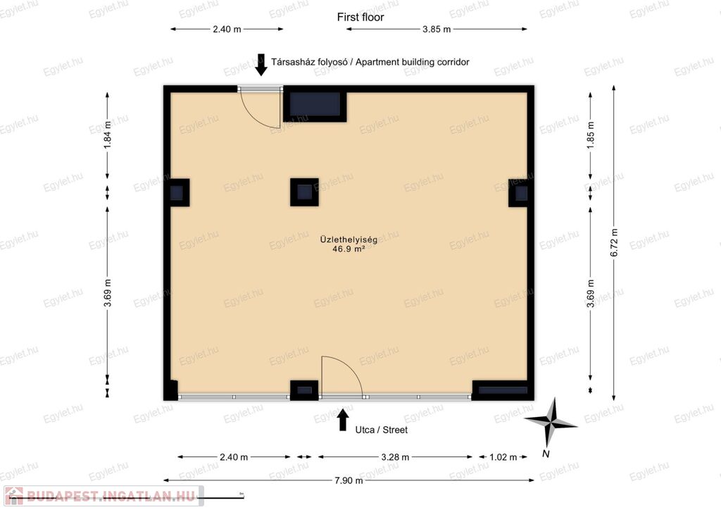 - bejárattal az utca és a társasház folyosója felől is,