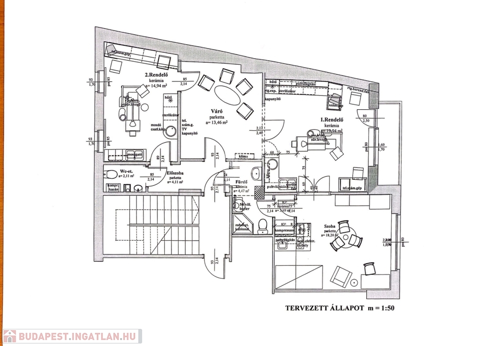 - 1. emelet | 3 szoba + tágas hall (páciens váró)