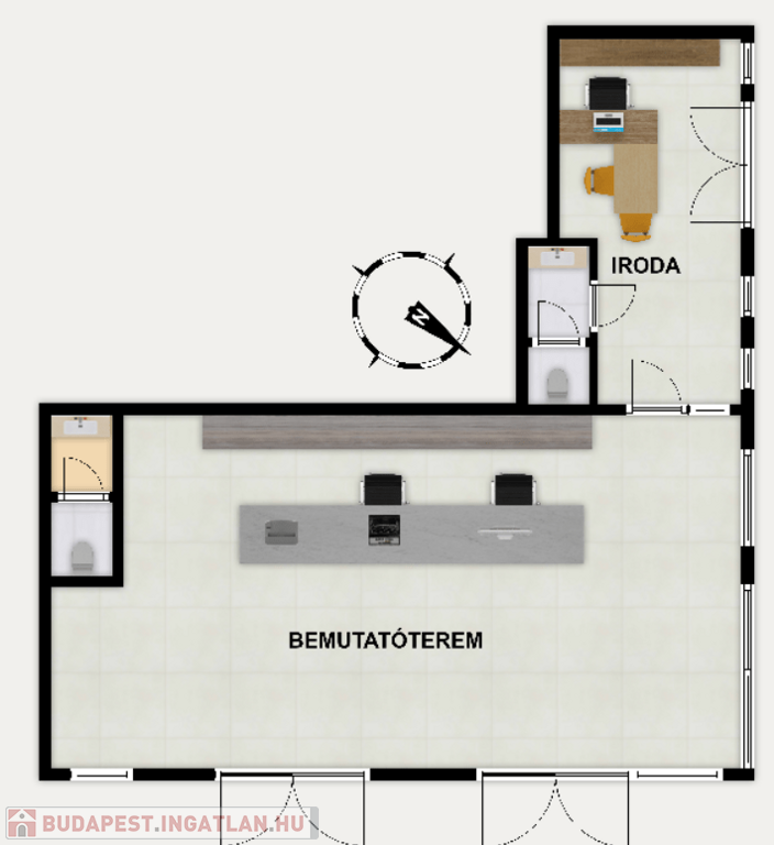 Közvetlenül a bemutatóterem mellett egy 55 m²-es üzlethelyiség teremgarázzsal szintén eladó, melynek ára 55 millió Ft.