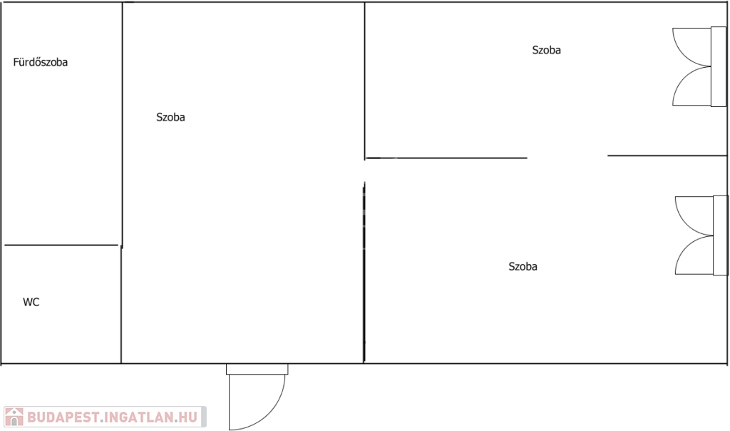 A nagyobb helyiség 24 m2 , a 2 kisebb helyiség pedig 9 és 11 négyzetméteresek.