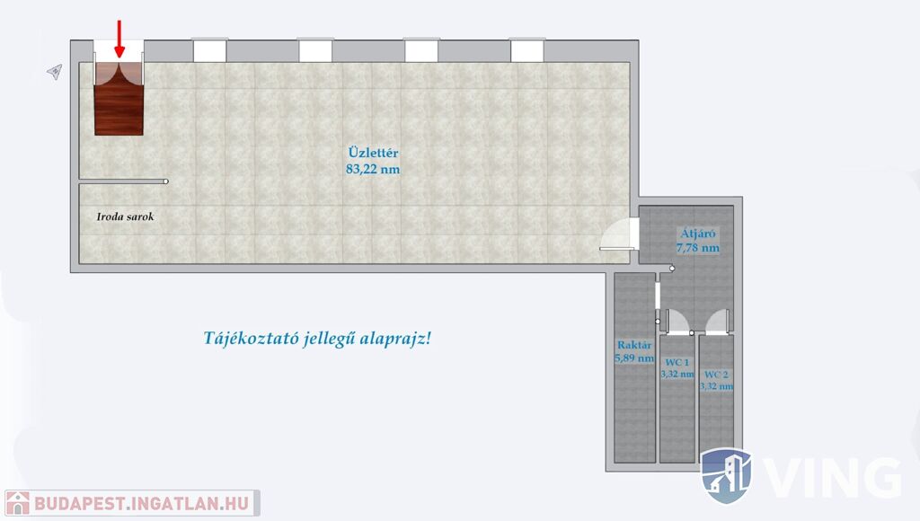 Az ingatlan fűtése elektromos. Elrendezése az alaprajz szerinti – a majd 85 négyzetméteres üzlettér mögött mosdók és raktár is ki lett alakítva. Elhelyezkedése okán a szépségszalontól a vegyesbolton át kávézóig nagyon sokfajta hasznosítása lehetséges. A képek között megtalálhatóak látványtervek is egy ide kialakítható bor-bárról – ami turisztikailag is kiváló, hisz ilyen még nincsen a ligetben.