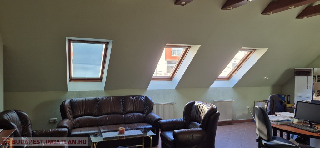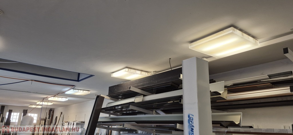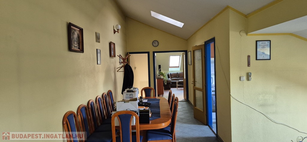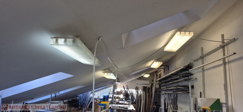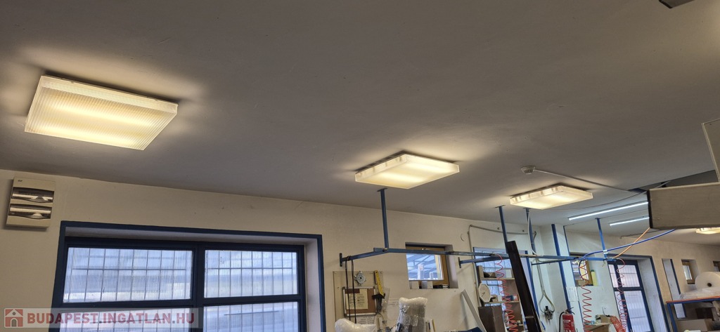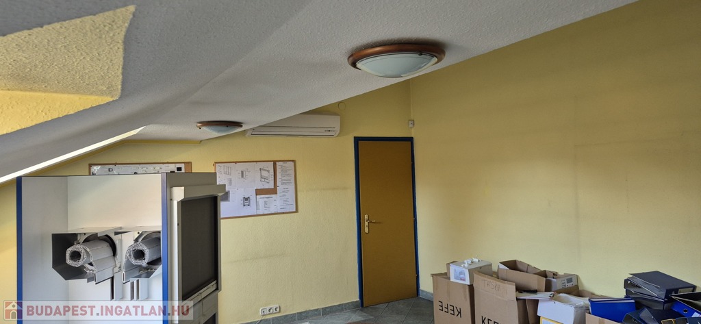 A földszinten tágas, 50 m²-es eladótér található, irodahelyiségekkel, raktárral, valamint egy 114 m²-es, világos, sokablakos üzemi résszel, két udvari bejárattal. Innen lépcső vezet a tetőtérbe, ahol szintén 114 m²-es üzemi terület, továbbá tárgyaló, iroda, ebédlő és fürdőszoba kapott helyet. A tetőtéri irodaszintről külön lépcső vezet vissza az eladótérbe, így a belső közlekedés rugalmasan használható.