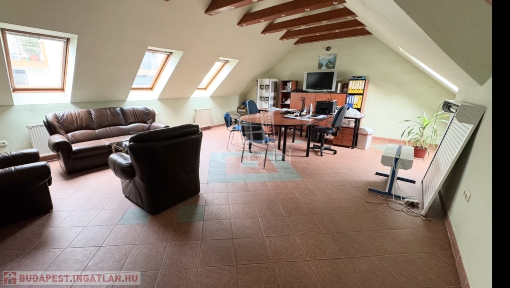 A tetőtér felújított állapotban van, amely alkalmas lakhatásra vagy munkásszállásként történő hasznosításra. A helyiségek praktikusan és célszerűen lettek kialakítva, így a raktározás, gyártás-előkészítés és irodai munkák is gördülékenyen végezhetők.