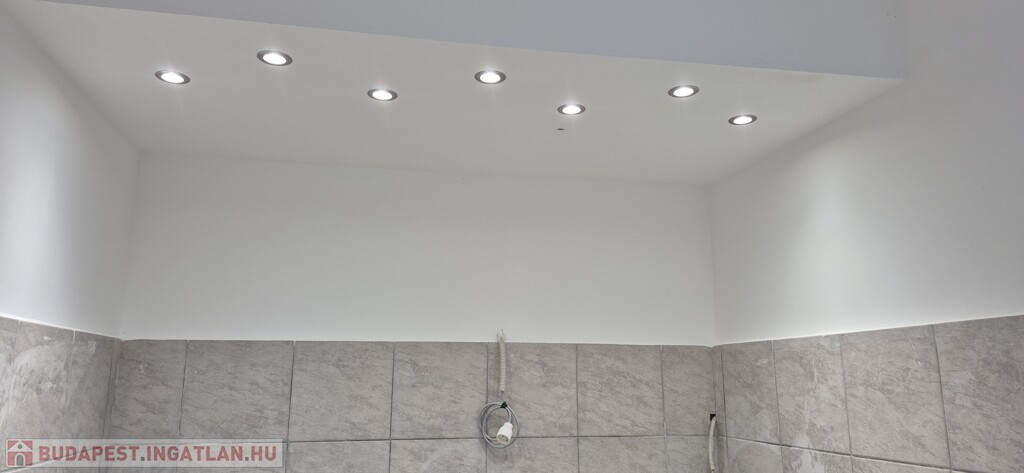 Spotlámpák lettek felszerelve az álmennyezetbe.Az álmennyezettel csökkent a belmagasság, kedvezőbb a fűtése a szép helyiségnek.