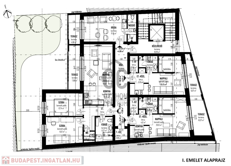 Földszinten 1 db üzlethelyiség és fedett/nyitott gépjárműtárolók (8MFt + ÁFA), melyek megvásárlása nem szükségszerű!
