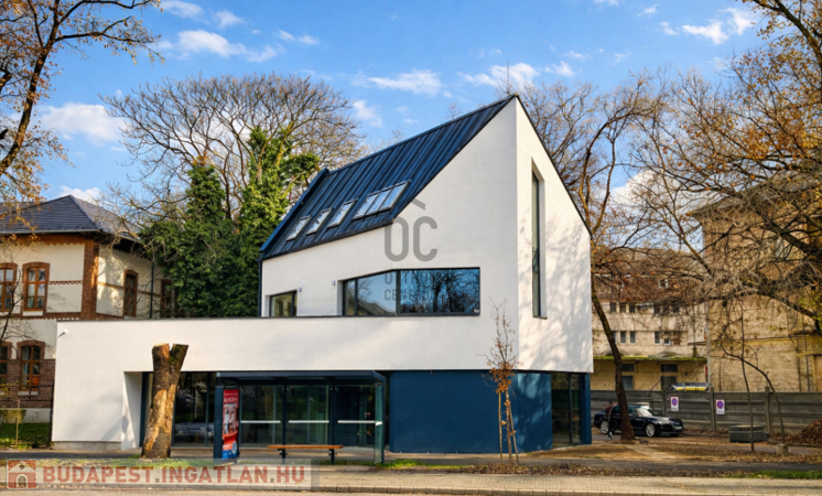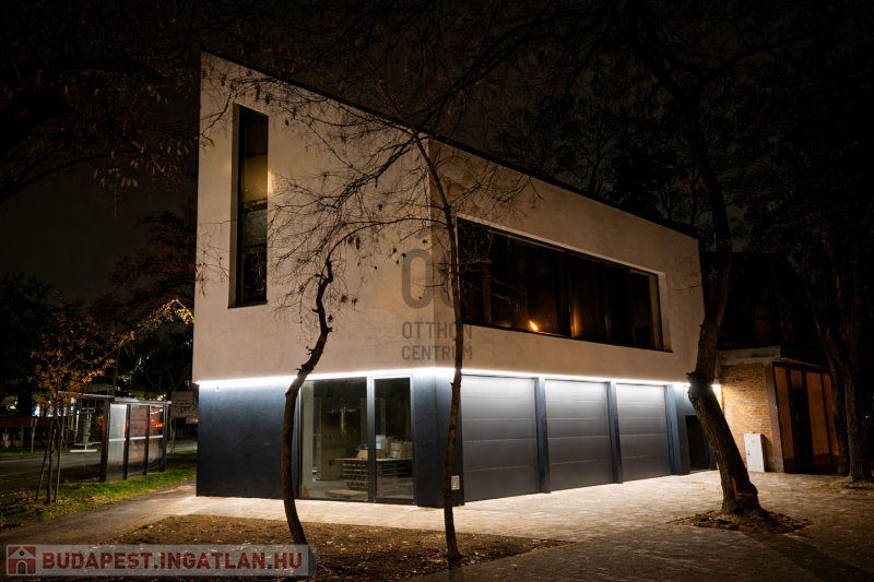 Egyben eladó, amely társasházként (2 lakás, 1 iroda, 3 garázs) készül, de kialakítása miatt számos üzleti és befektetési koncepcióra továbbgondolható.