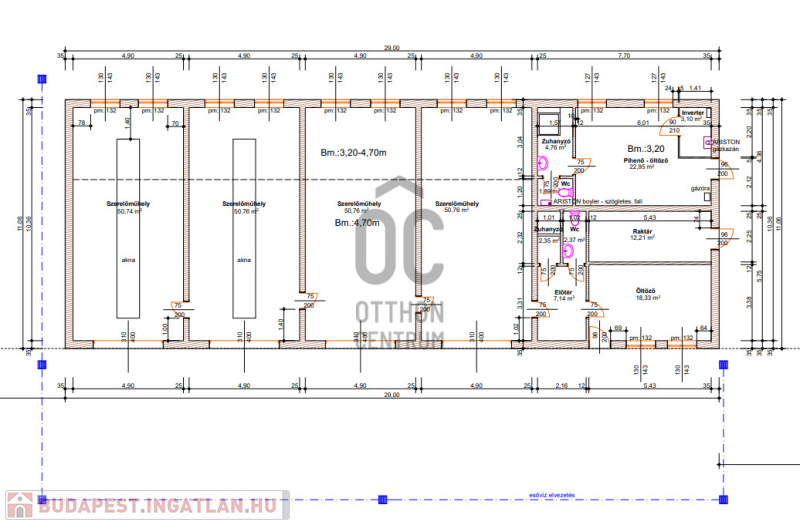 * 320 m2, 4 állásos szerelő műhely és szociális blokk