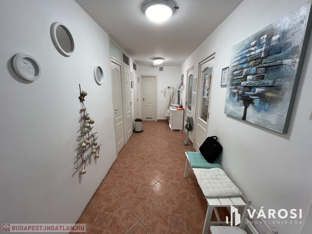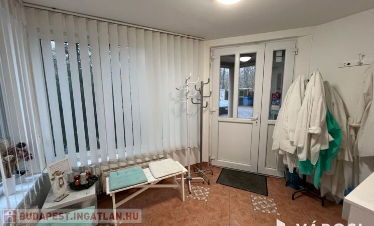 A helyiség praktikus elrendezéssel rendelkezik, három kezelőhelyiséggel, váróval, három mosdóval, teakonyhával minden igényt kielégít.