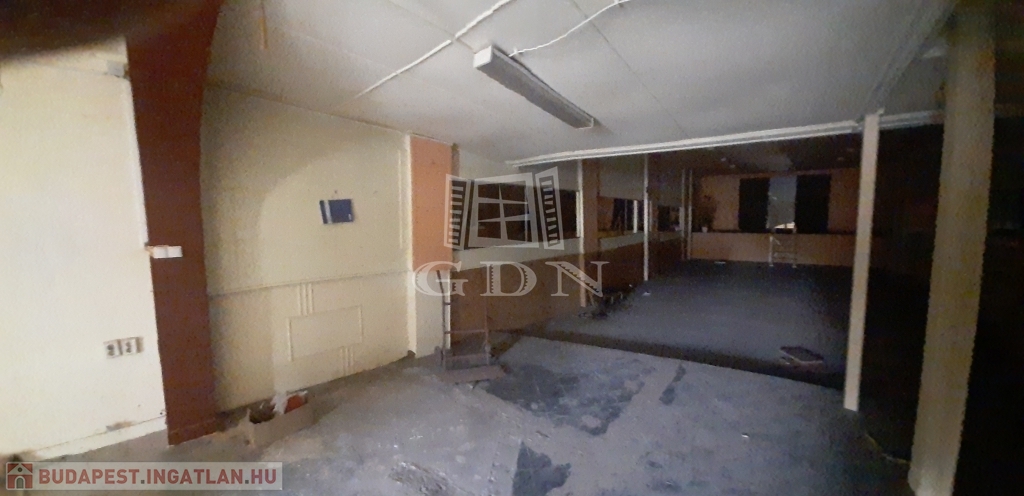 A helyiség érdekessége, hogy a földszinti 150 négyzetméteres eladó térből egy lépcsőn jutunk fel egy 50 négyzetméteres emeleti eladó tér.