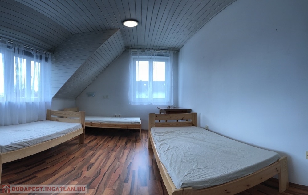 Győr-Likócs természet közeli, családi házas nyugodt övezetében, AUDI gyártól, Ipari Parktól, Belvárostól, M1-es autópályától pár perces autótávolságra, 2.100 m2-es összközműves telken lévő 2 szintes, jó állapotú épületben, összesen 9 db külön bejárattal rendelkező (10 m2; 14 m2; 17 m2, 19 m2, 20 m2 nagyságú) hálószobákból, 3 db fürdőszoba + WC-ből, méretes nappaliból/társalgóból/közösségi térből (54 m2), különálló konyhából, méretes étkezőből (17 m2), különálló kamrából, 35 m2-es TERASZBÓL, különálló pincetárolóból álló, valamint több KLÍMÁVAL felszerelt, 336 m2 hasznos alapterületű panzió/családi ház eladó.