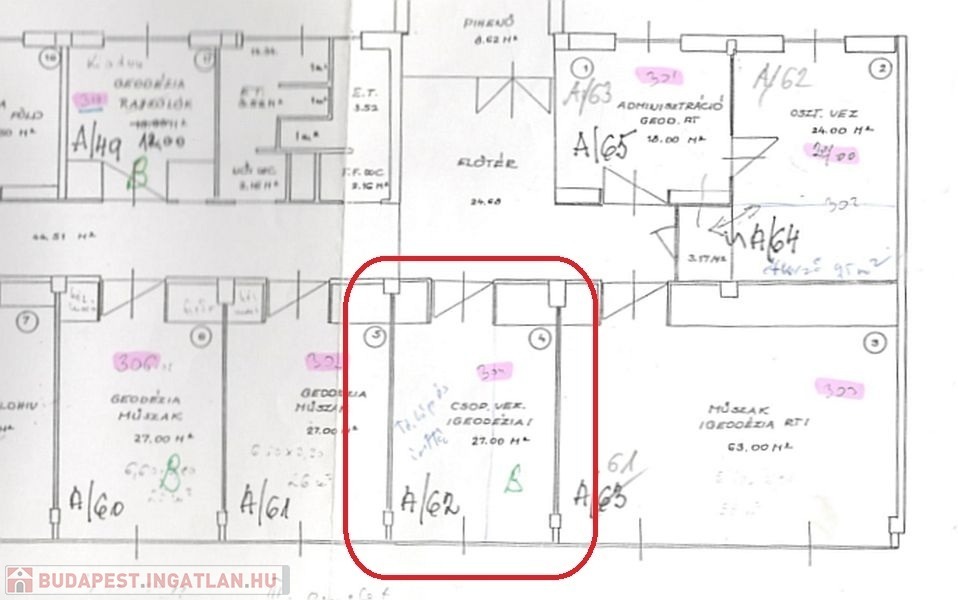 15m2, 26m2, 53m2 és egy kétlégteres 42m2-es irodák állnak rendelkezésre, amelyek irodaházban találhatóak. Liftes épület, de nem akadálymentesített. Parkolás közterületen megoldható. Az irodákhoz vásárolható 1 db 2m2 irattároló, ami a folyósóról közelíthető meg, illetve 2db 10m2 pince tároló. Ezek külön megegyezés részét képezik.