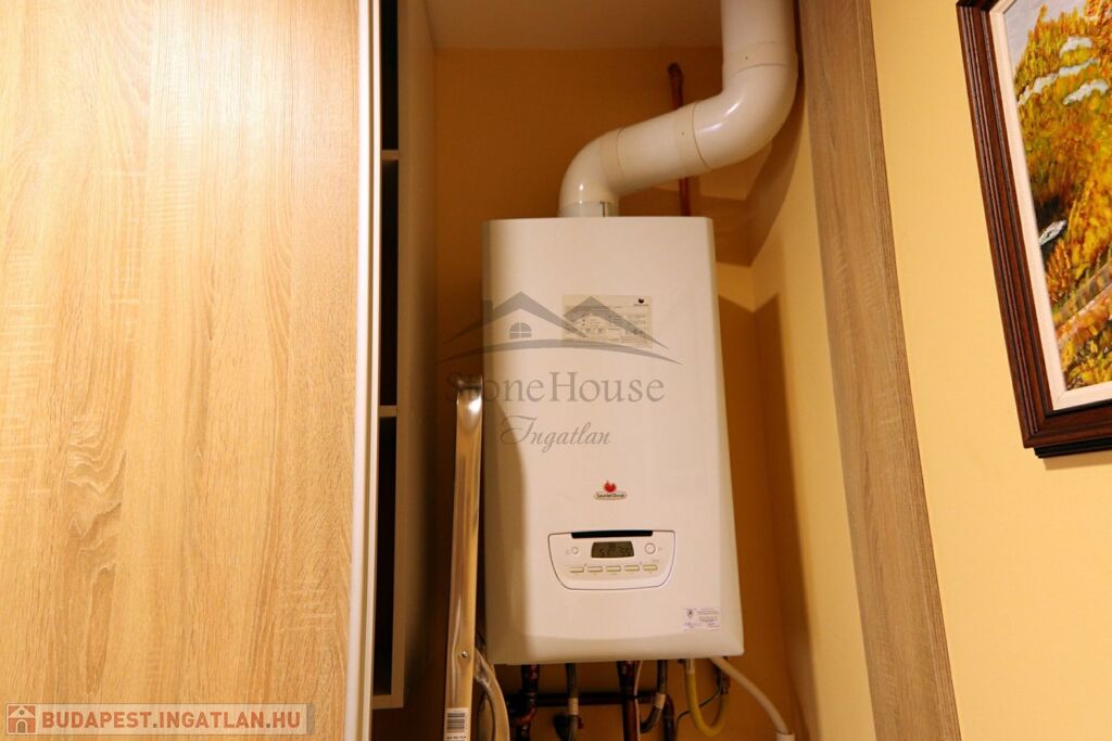 - Fűtés, meleg víz kondenzációs gázkazánnal történik, a hálószobákban radiátorral, a többi helyiségben padlófűtéssel