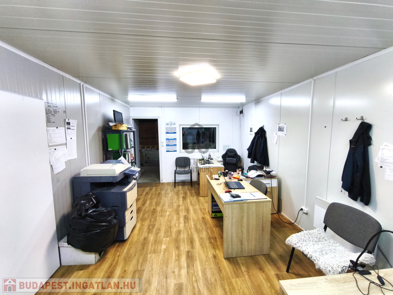 - Helyiségek: iroda, tárgyaló, szociális blokkok, zuhanyzó, teakonyha, raktár, műhely, tároló