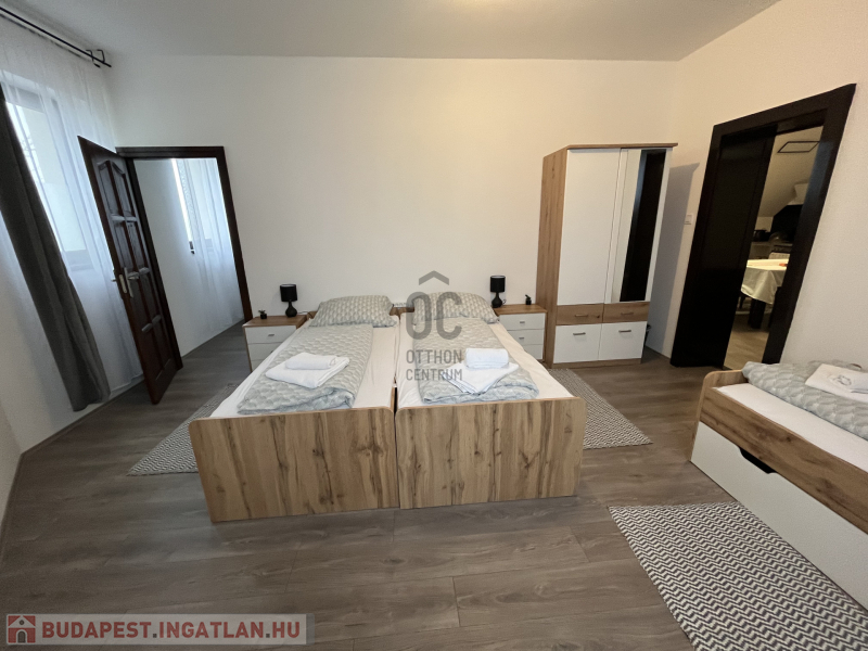 Emelet: felújított, vendéglátásra alkalmas helyiségek, Nappali + 4 hálószoba, 2 fürdőszoba, amelyek tovább bővítik a hasznosítás lehetőségeit.