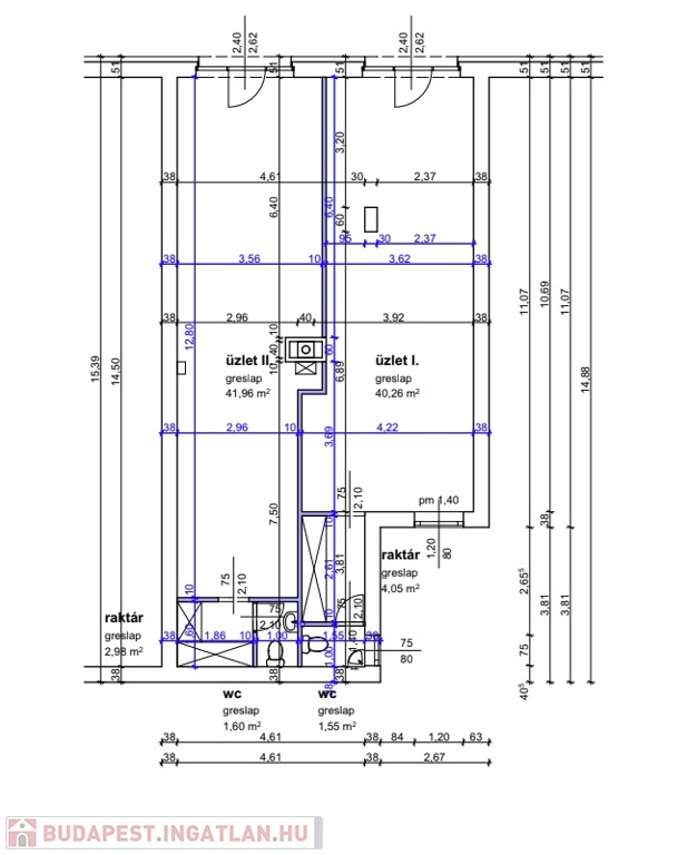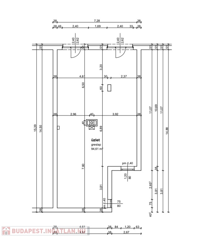 Közvetlen utca fronti dupla bejáratú, nagy kirakattal rendelkező üzlet.