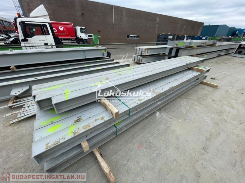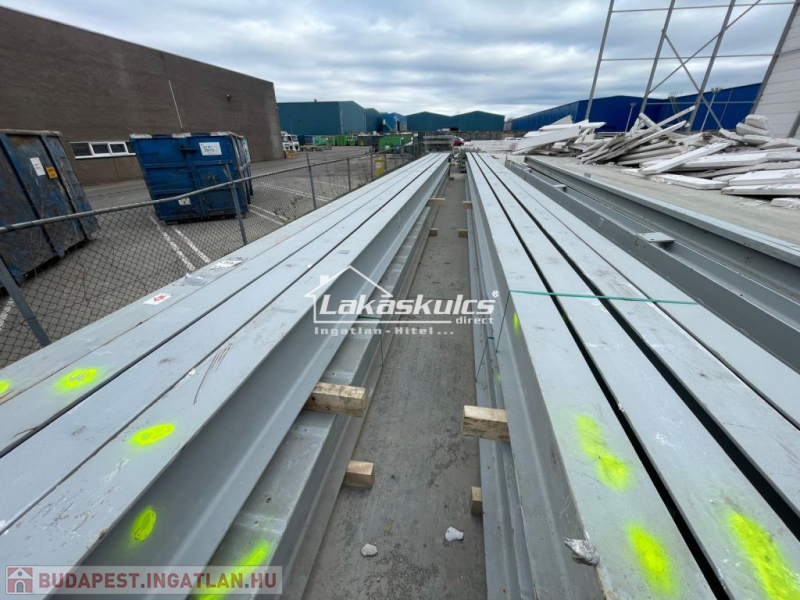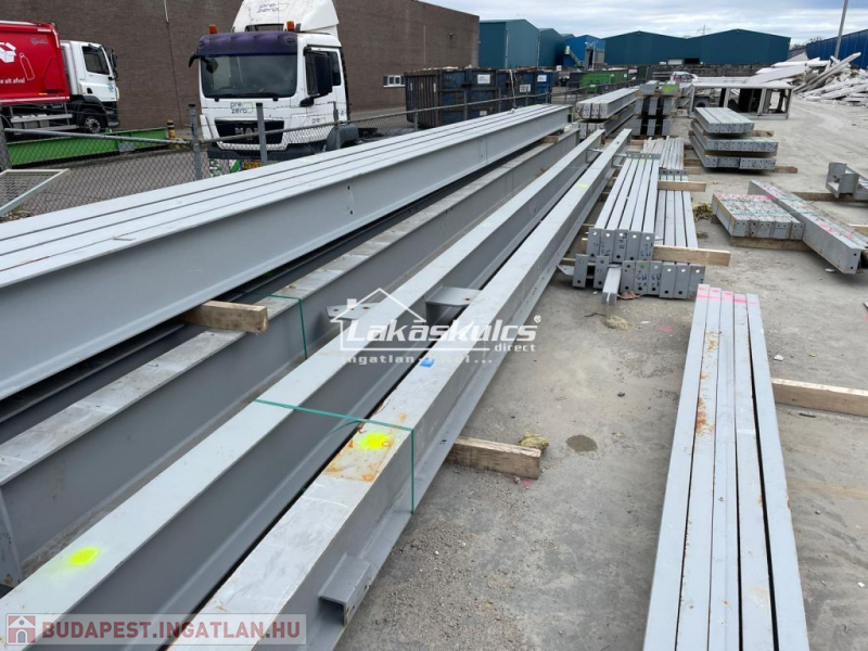 Nyugat-Európából származó, bontott 2.905 m2-es csarnok acélszerkezete eladó, amelyből több darab kisebb méretű ipari csarnok is építhető. Mértek: 41,5x70 m, azaz 2.905 m2, magassága: 13,7 m. A tetőgerendák anyaga IPE-360, hosszúk 14,16 m