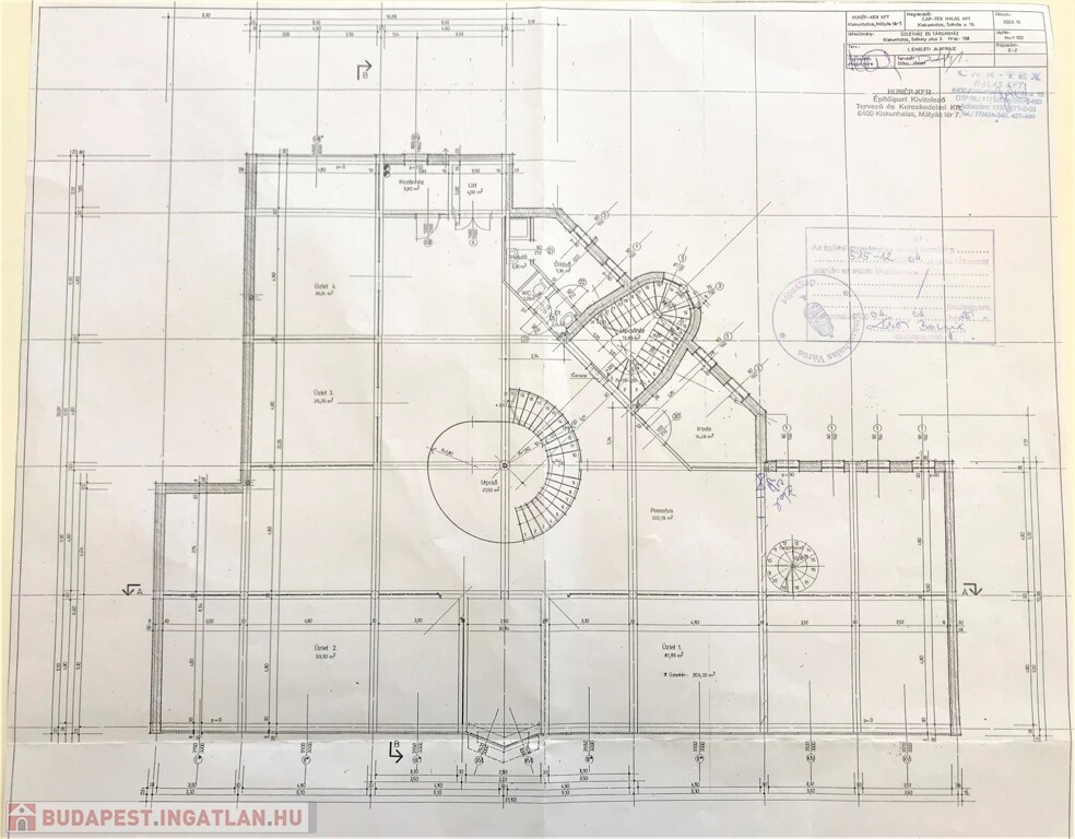 - Földszinten elhelyezkedő helyiségek: árkád (5,22 m2), üzlettér (121,18 m2), passzázs (155,13 m2), lépcső (10,00 m2), szellőző gépház (4,90 m2 ), dohányzó (5,59 m2), közlekedő (7,81 m2), előtér (2,10 m2), WC (1,35 m2), öltöző (5,29 m2), előtér (1,20 m2), női WC (1,30 m2), előtér (1,10 m2), piszoáre (1,30 m2), férfi WC (1,33 m2), söntés (15,50 m2), vendéglátó egység fogyasztótere (65,80 m2), WC (1,85 m2), kapualj (37,52 m2), szendvics előkészítő (10,00m2), húselőkészítő (2,40m2), mosogató (2,80m2).